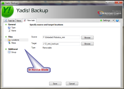 Yadis! Backup serves the needs of both novices and experts in a pretty cool way. It asks you to specify your expertise level in using similar backup utilities during the initial steps of your installation.